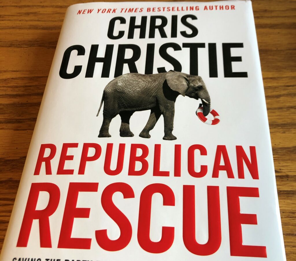 Chris Christie was all over TV last week hyping his book, Republican Rescue, the cover of which, creatively, shows an elephant holding a rescue tube in its trunk.