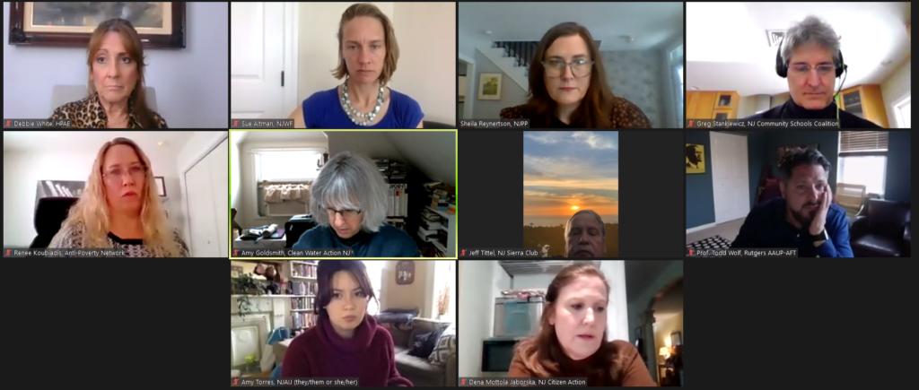 The coalition called for Governor Murphy to make broad strides in fully funding public education, children’s services, public health, higher education, student debt elimination, closing corporate tax loopholes, addressing racial inequity that has been magnified during the pandemic, as well as environmental issues, and more. To pay for these initiatives, they want the state to ensure that the wealthiest segments of society and industry “pay their fair share.”