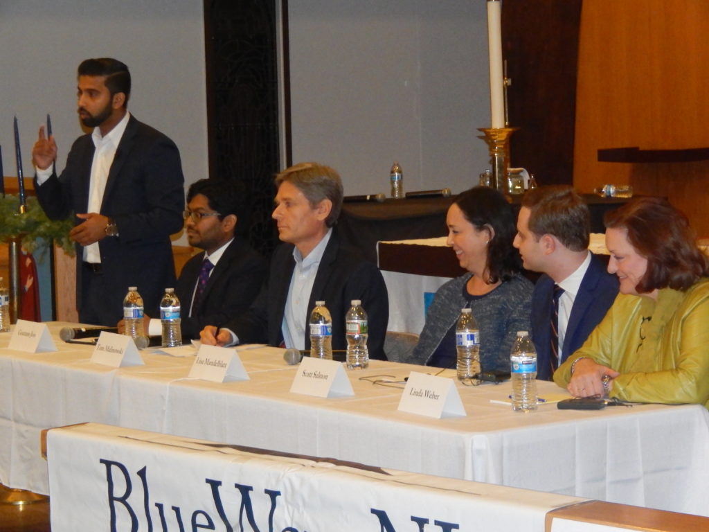 8. There's definitely some progressive passion at work in the district. Six candidates stood at the front of the room in a front of a packed St. Mark's Church. Progressives? In church? Under the soaring organ pipes behind the altar, Blue Wave maestro Marcia Marley looked like she was in Blue Wave heaven. Familiar faces dotted the crowd. Bullhorn cowboy Joey Novick wore a bemused grin foretelling GOP doom, his money down on fellow attorney Goutam Jois of Summit (Joey's the campaign manager, in fact). Barry Brendel - he of the Bernie Sanders rebellion (and the Gary Hart debacle in 1984) - held court in the crowd, horn-rimmed millennial elves gathered round him in hopes of parceled political stocking stuffers. Former Edison Mayor Jun Choi - one of the early backers of Barack Obama in New Jersey - prowled the floorboards. There was some energy among these people who think they can take down incumbent U.S. Rep. Leonard Lance (R-7).