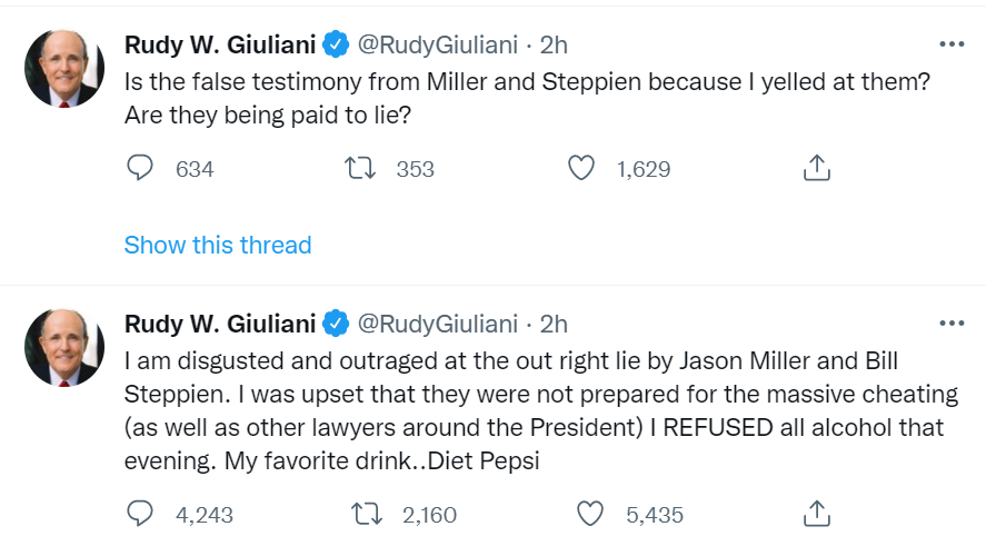 Miller also described Giuliani as drunk on Election Night 2020.