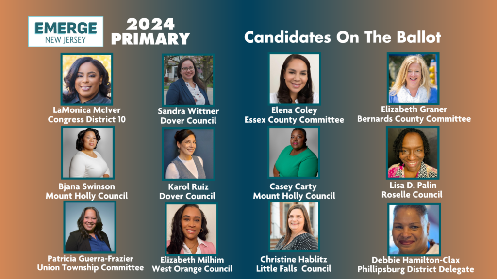 “Emerge alums are leading on the primary ballot and will show the power women have in our elections,” said Geri Jannarone, executive director of Emerge NJ. “These 12 women are running to flip seats from red to blue, compete in some of the most important elections in the country, and provide powerful new representation in office. As we look to elect more women in the New American Majority in NJ this year, Emerge alums and their success will be essential in making it happen. Good luck to all of our alums running in primaries and we look forward to seeing your names on the ballot in November.”