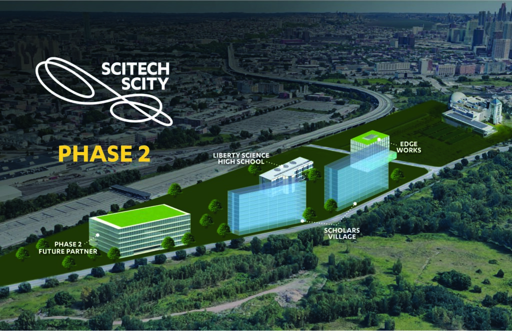 The City of Jersey City donated 12.5 acres to SciTech Scity and will provide financial assistance for school operating costs. To date, LSC has raised $27 million in philanthropic donations for the innovation campus, including $5 million specifically for the public high school. LSC plans to break ground on SciTech Scity in 2021 and open the first phase, including the Edge Works incubator, in 2023. Edge Works will provide nearly 100,000 square feet of research labs, private studios, open workspaces, and a conference center. Also onsite will be Scholars Village, a residential component for innovators, scientists, entrepreneurs, and their families.