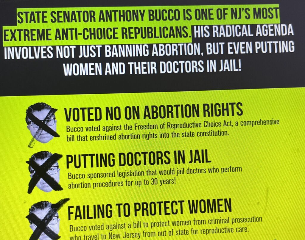 Abortion rights are law in New Jersey, but the Dems argue that if Republicans get control of the Legislature, they will seek to chip away piecemeal - like cutting off family planning funding.