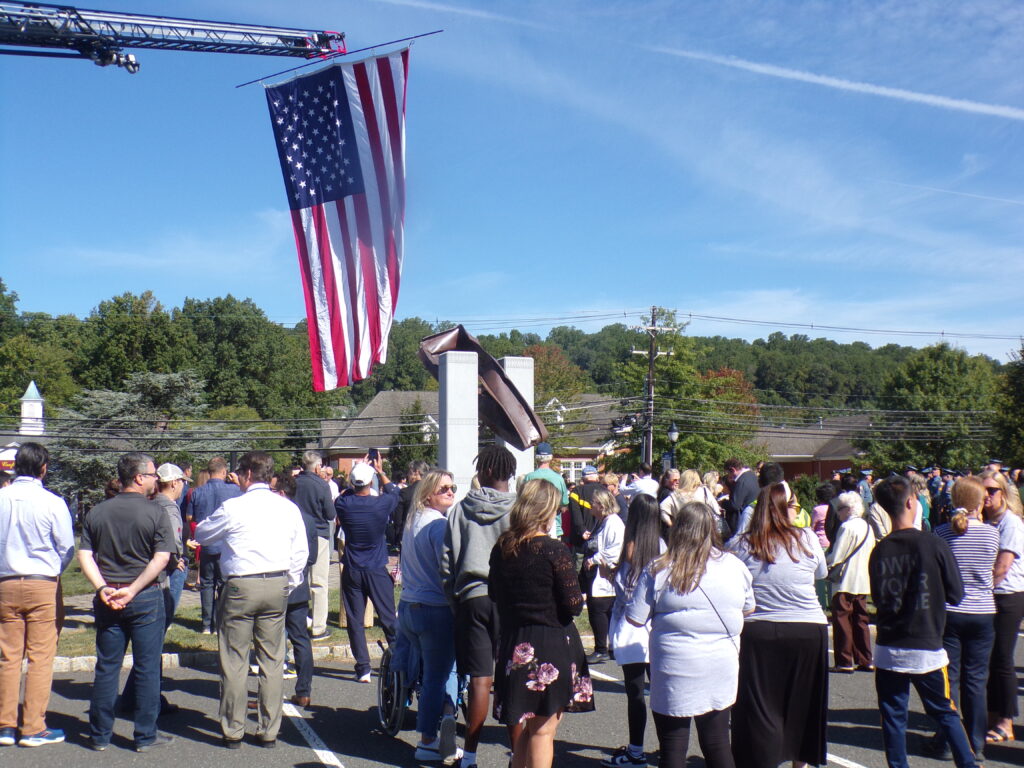The Warren Township Police Department Color Guard laid a wreath in front of the town's 9/11 Memorial and the mayor asked for a moment of silence in honor of the nearly 3,000 Americans who lost their lives on Sept. 11, 2001.