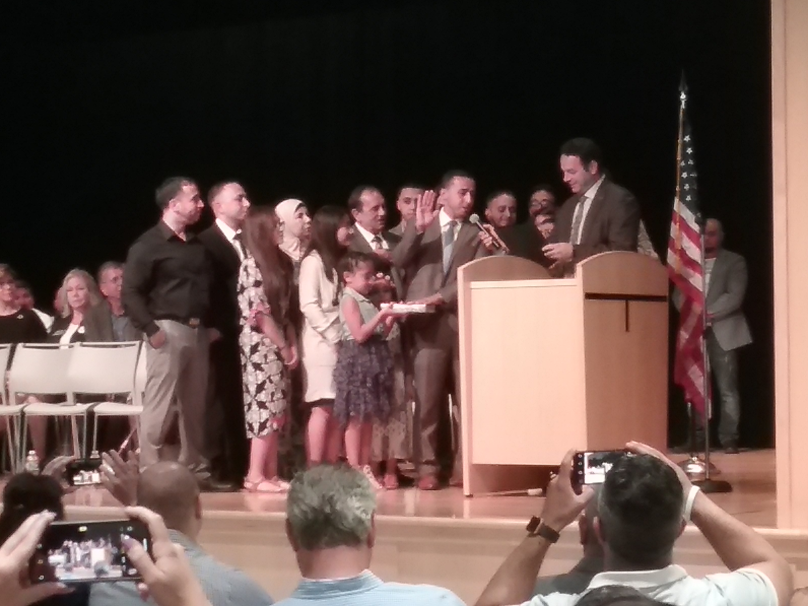 Sworn-in by Mayor Andre Sayegh, his ward predecessor, Al Abdelaziz took the oath of office tonight to officially become the 6th Ward Councilman. He becomes the youngest to serve on the Council in the city's history, as well as it's first Palestinian-American.