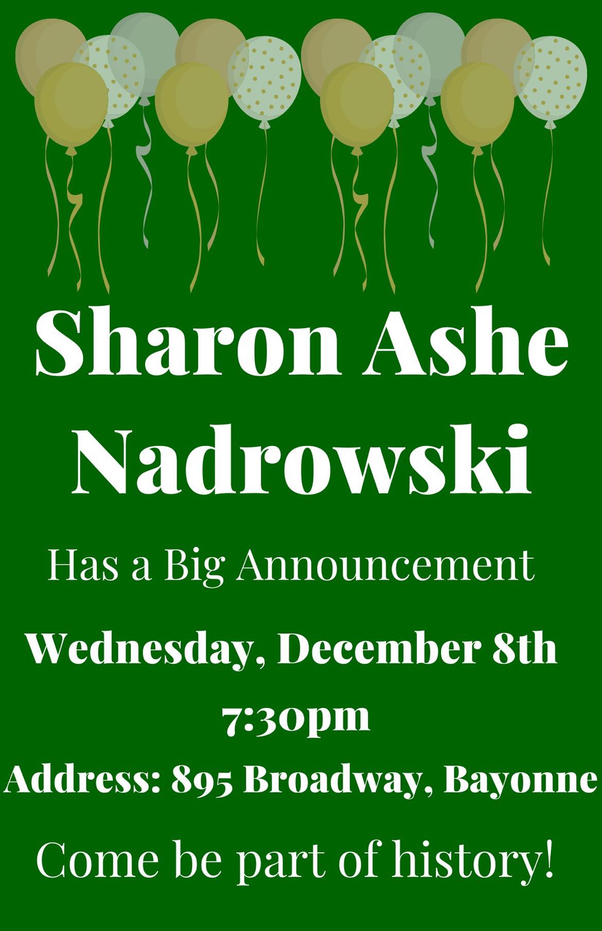 Bayonne on Wednesday of this coming week expects Council President Sharon Ashe Nadrowski to formally announce her candidacy for mayor.