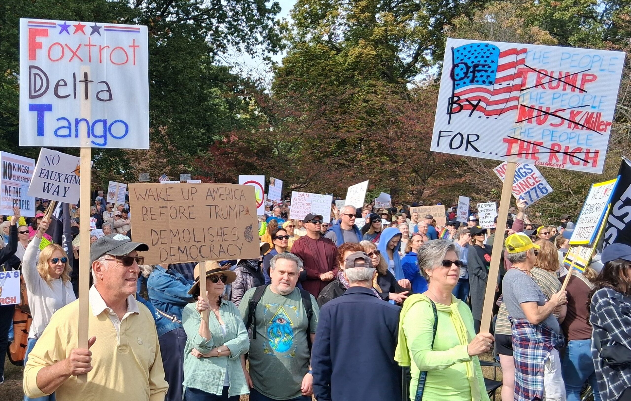 A statement yesterday by U.S. House Speaker Mike Johnson about the ensuing No Kings Rallies brought a lot of people out of their lawn chairs in this gently sloping and gracefully landscaped suburban park. "We refer to it by its more accurate description," said Johnson "- 'The Hate America Rally.' I'm not sure how anybody can refute that."