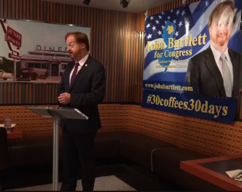 Passaic County Freeholder John Bartlett formally announced his candidacy for the CD11 congressional seat this morning against Rep. Rodney Felinghuysen, slamming the incumbent for a lack of engagement with constituents. Bartlett is forgoing a third term on the freeholder board, also up in 2018.