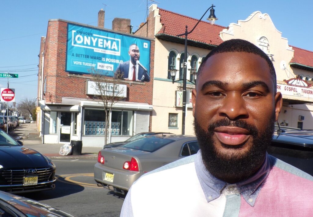 NEWARK - The contest sits on the shoulder of South Orange Avenue in the form of big, vibrant billboards - many of them featuring Mayor Ras Baraka and his West Ward candidate DoItAll Kelly, but not the one significantly situated at the corner of Halstead Street above the campaign headquarters of Chigozie Onyema.