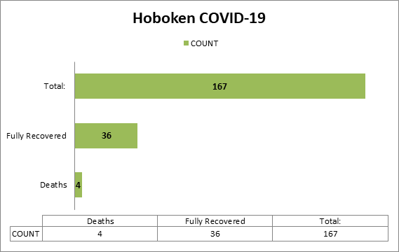 We reported another 14 positive COVID-19 cases from the Hoboken Health Department today, with 167 total in Hoboken. As always, the Hoboken Health Department conducts an investigation to ensure all those in contact with those individuals self-quarantine. Thankfully, of the 167 that tested positive, 32 have fully recovered.