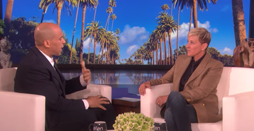 In his TV interview with Ellen DeGeneres, U.S. Senator Cory Booker (D-NJ) extols the late U.S. Senator John McCain (R-AZ) as he tries to present an alternative portrait of American presidential leadership.