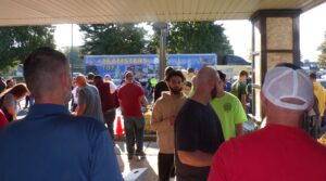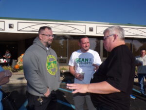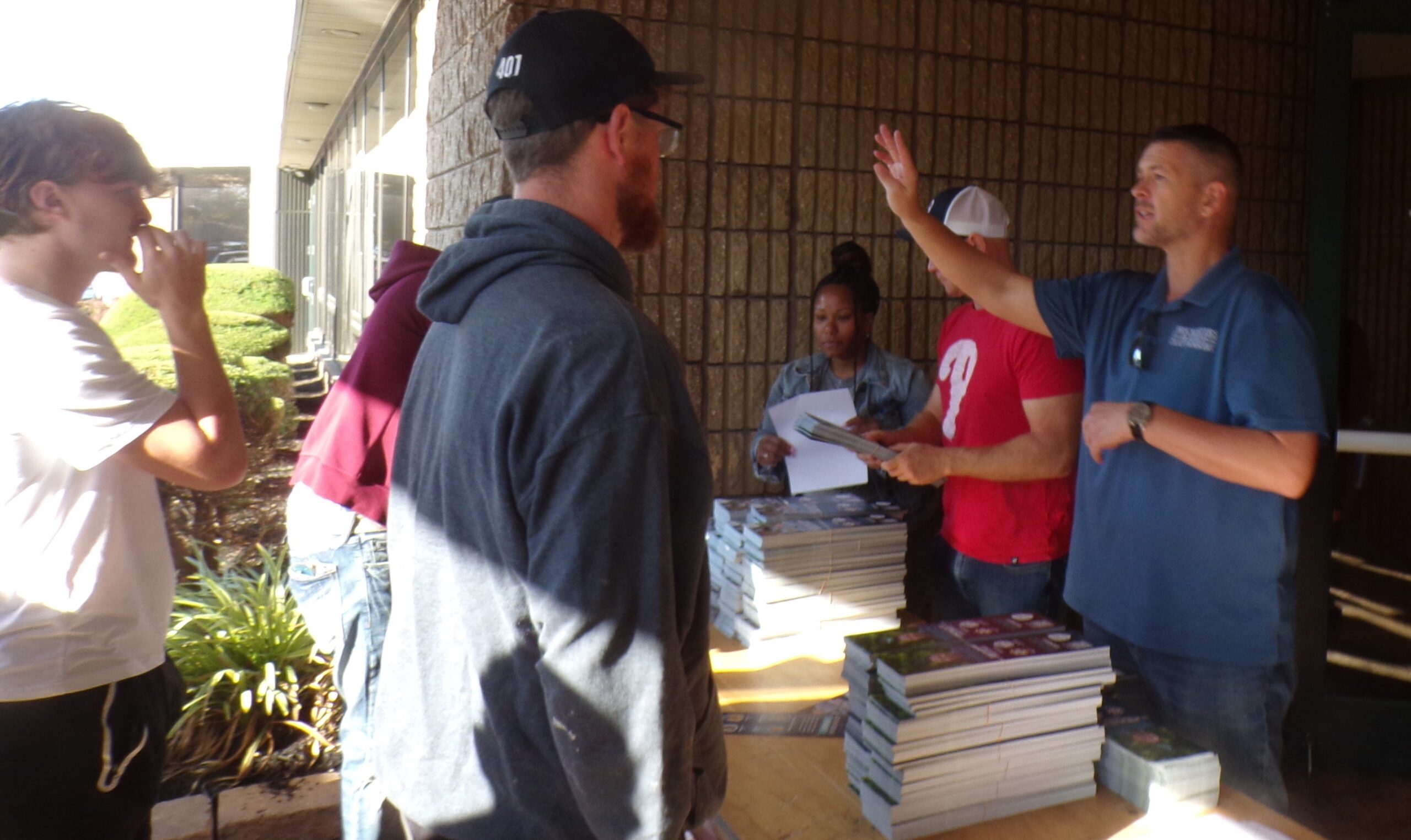 Ryan McAdams (pictured, top) circled up and led the Steamfitters from Local Union 420, and Brian Eddis, Building Trades business agent, handed the literature and maps to the canvassers.