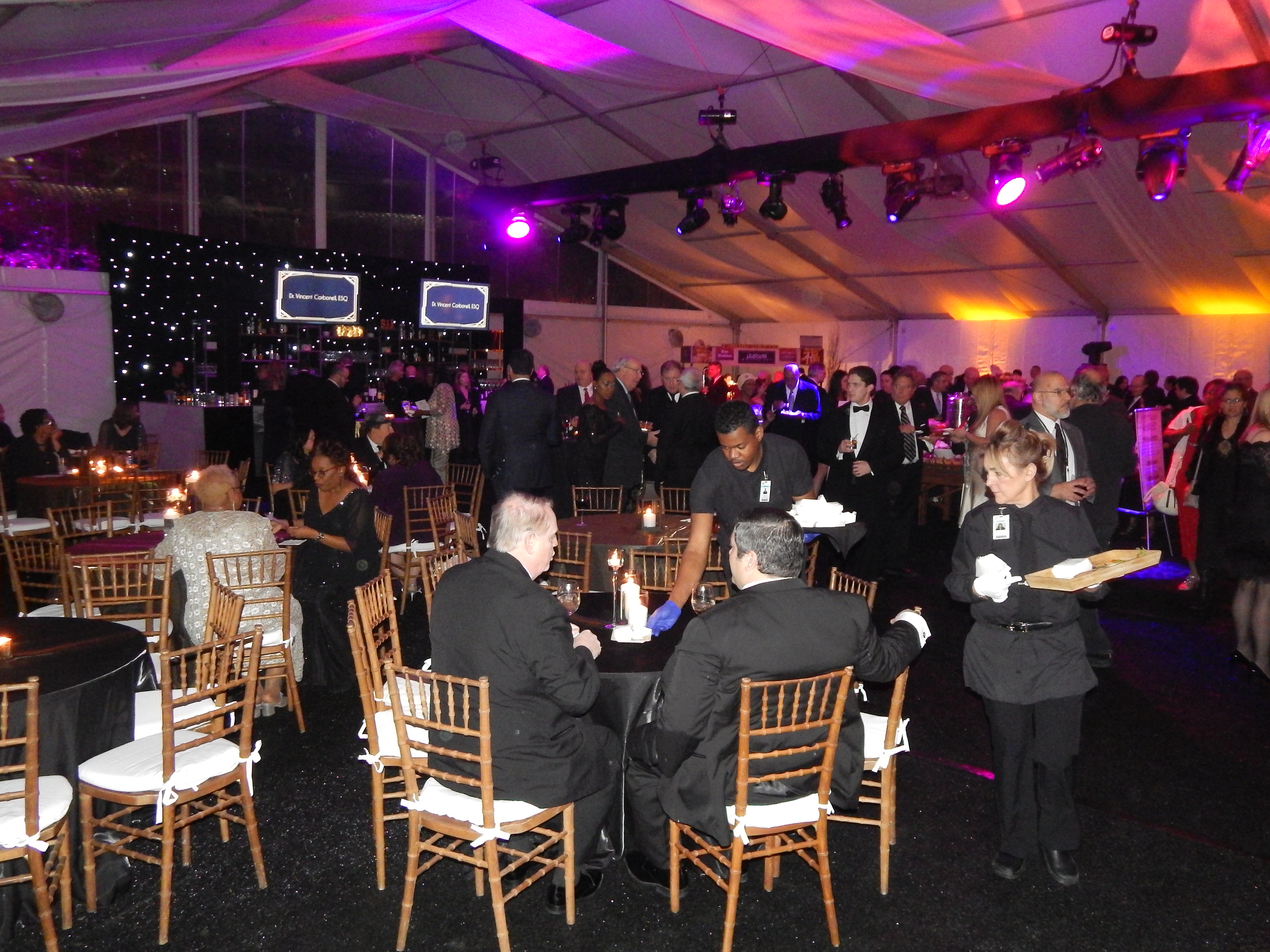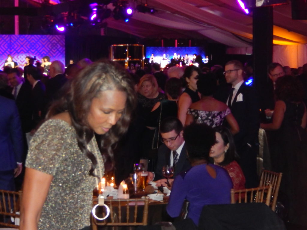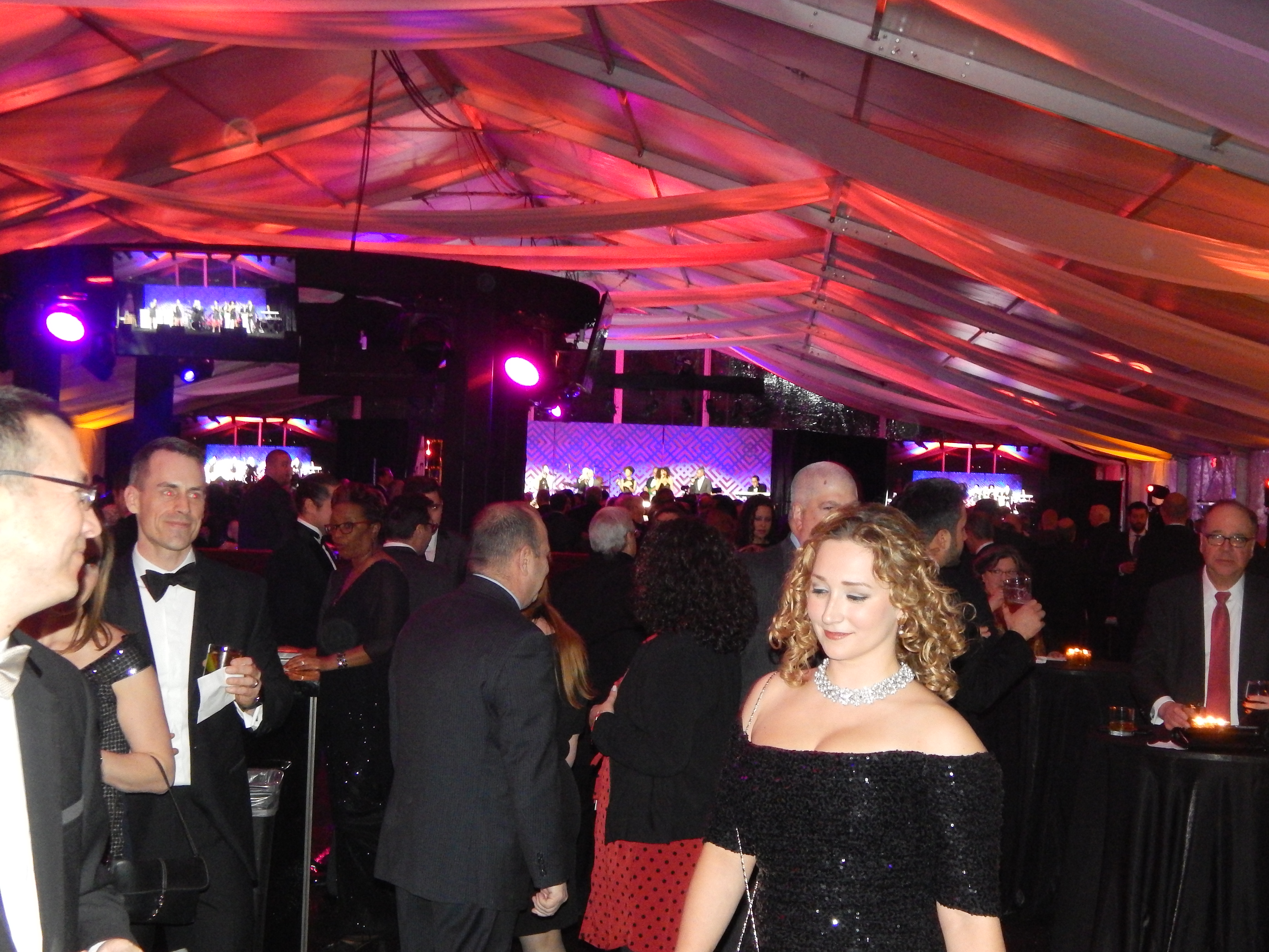 A lot of business types navigated a room too loud to have any conversation without sinking one's teeth into someone else's ear.