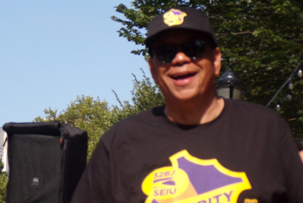 NEWARK - Democratic candidate for Lieutenant Governor Dale Caldwell this afternoon donned a 32BJ SEIU T-shirt and grabbed a sign in support of security guards seeking a fair wage contract.