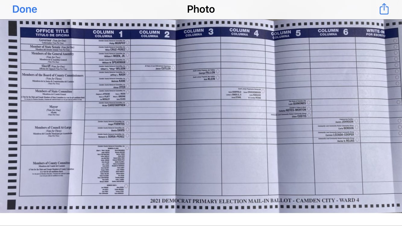 The three alternatives - School Board Member Elton Custis, Camden Councilwoman Felisha Reyes Morton, and Spanish teacher Luis Quinones - reside in crammed-together obscurity in Column 5.