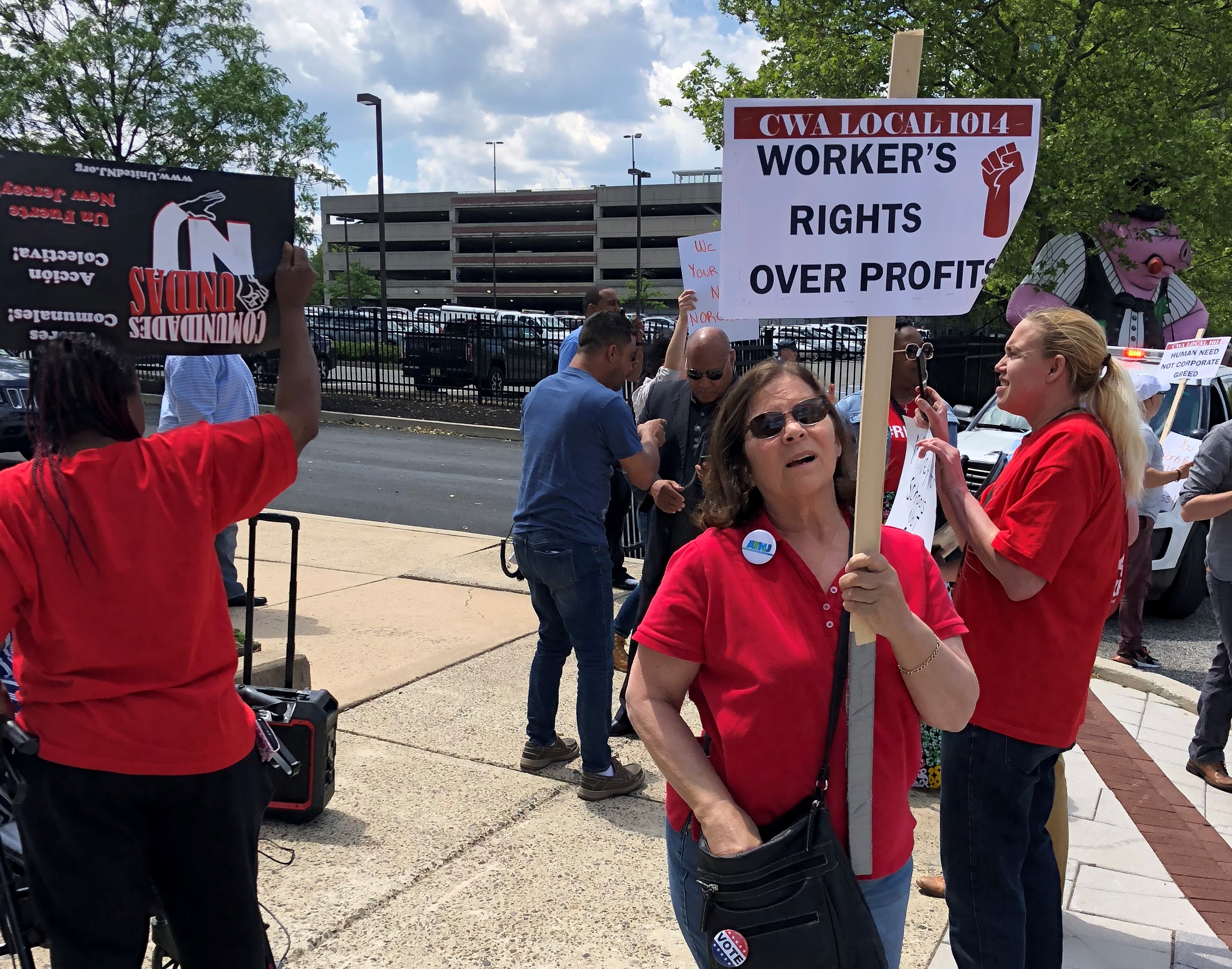 There was no visible politics in the room, but just outside on Federal Street, protesters picketed and chanted in opposition to the tax incentive program.