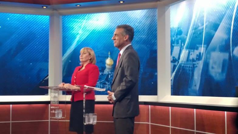 The Candidates Take the Stage By Insider NJ | May 18, 2017, 8:11 pm | in The Diner Booth NEWARK - Ciattarelli and Guadagno have assumed their positions at the Planet Krypton-like podiums as NJTV moderator Mike Aron settles in for the contest.