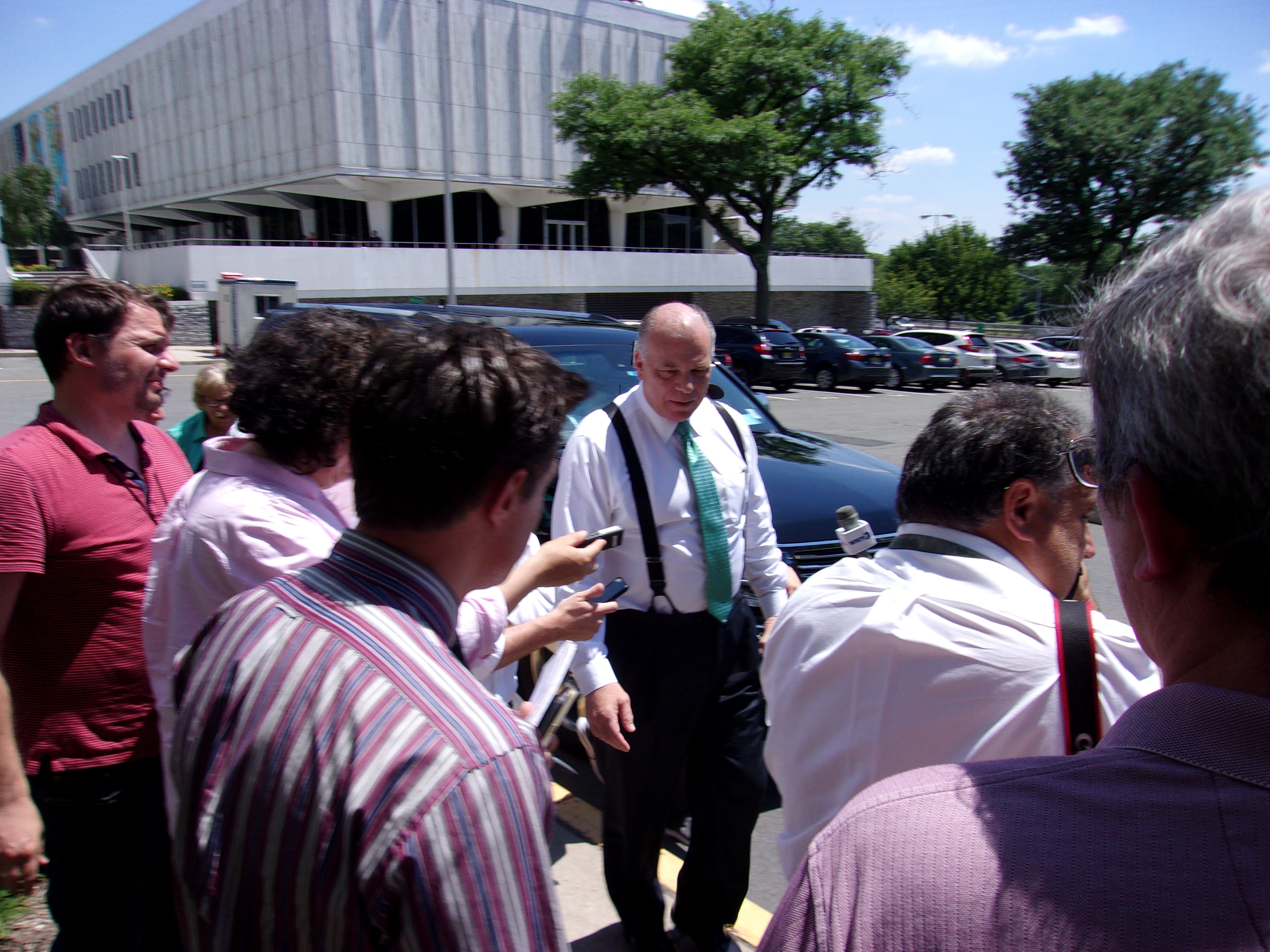 At 130pm, the Assembly began its scheduled voting session, while the Senate lunched in the caucus room. Sweeney allies were reluctant to say he would budge towards Murphy's latest offer. 'Craig moved the big guy yesterday', said one source, referring to Coughlin's getting Sweeney to snap on the $5M threshold, to no avail from the Governor. The Senate GOP sent a letter to the legislative leadership and Governor calling for structural budget reforms, including public employee health benefits and a cap on state spending increases, while Bramnick told Insider NJ he was prepared to override a budget veto, and would begin discussions with Democratic leadership. Back in the halls of the Statehouse, ATU chief Ray Greaves, a strong ally of Murphy, said the Legislature's 'antics' were 'really pissing off our membership'. The triumvirate went under the hood again, with Sweeney (wanting $5M or bust on the millionaire's tax) and Murphy (wanting $1M originally, and moved to $1.75M) both appearing to be dug in. But Murphy would budge, a source said, willing to compromise to $2.5M. With the Senate and Assembly having left by 3:30PM, reporters caught sight of SMO ED Kevin Drennan and AMO Deputy ED Mickey Quinn coming in and out of 225 West State Street, as Trenton awaited word on a budget agreement.