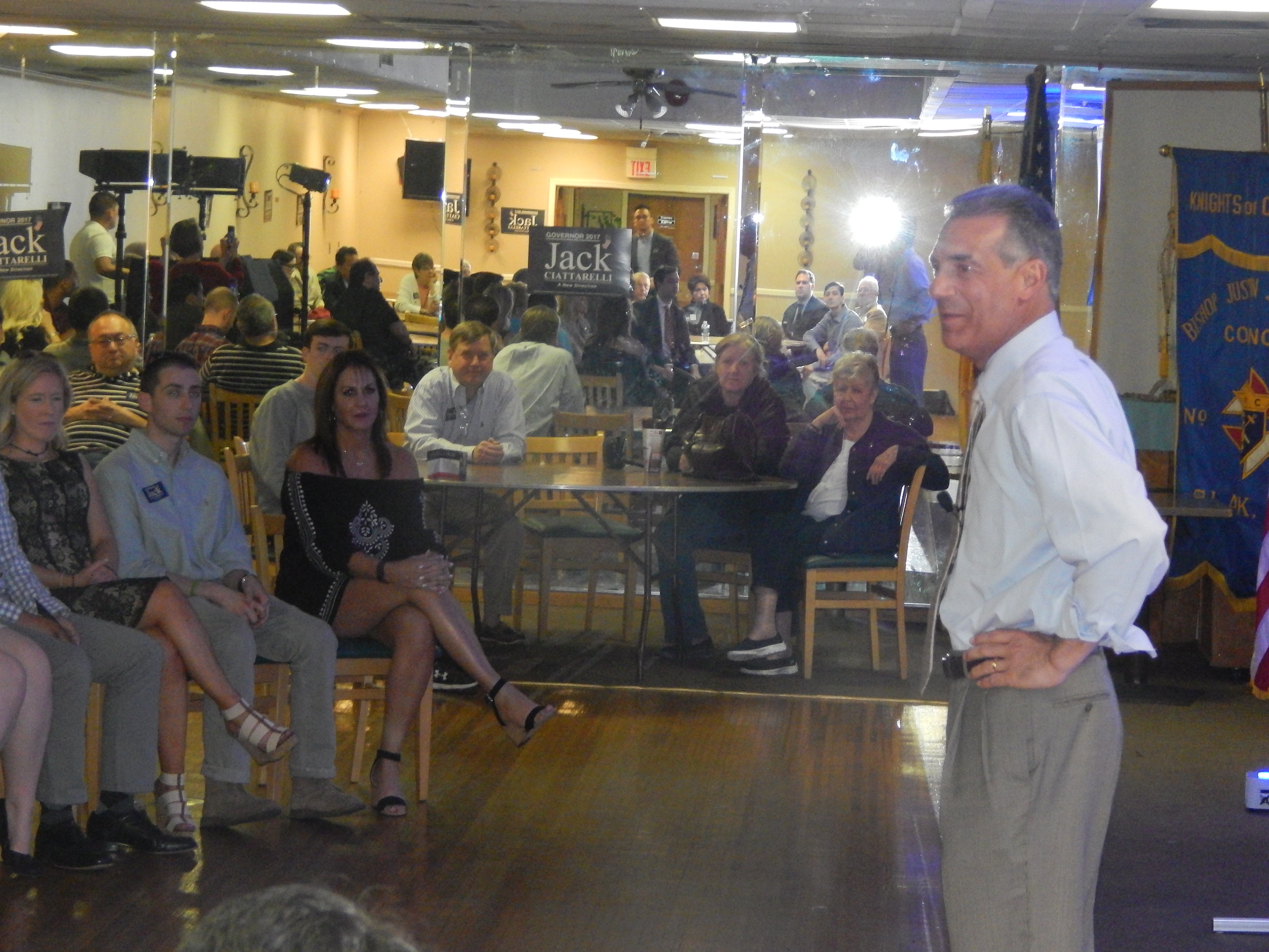 CLARK -No one knows exactly what will happen in the Republican Primary for governor two weeks from now, but Assemblyman Jack Ciattarelli - convinced of momentum on his side built on his campaign's relentless new message-new messenger narration - sees opportunity in the general election. "I'm telling you," he said this evening at his town hall event, one of multiple such events planned for the duration. "There's a pathway to victory - a school funding path." North and south are in a statewide slug-fest right now on the issue of a fair and equitable school funding formula: Senate President Steve Sweeney (D-3) versus Speaker Vincent Prieto (D-32).