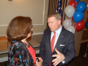 His running mate, a come-backing former Assemblywoman Donna Simon (R-16), received a big hand.