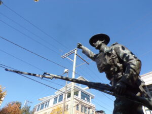 A few blocks from the statue of the Tenderloin Doughboy (above, right), a few blocks from the Liberty Bell, a few blocks from Independence Hall, steps away from the mighty Delaware River, Rick Lombardo of the 62nd Ward, Northeast, said, "This election is important. They're all important. But this one's really important. I'm 71. My father fought in World War II so we wouldn't speak German here on the east coast and so they wouldn't speak Japanese on the West Coast. He fought for our right to vote. People don't realize that. The hardcore voters will vote. We need to get the casual voter out. This isn't a casual situation."
