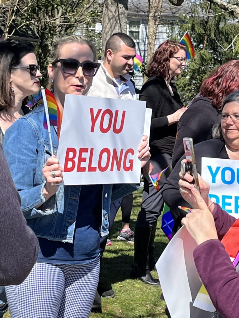 So says parent Piatip Chattopadhyay, who was one of about 50 to 60 people convening Friday afternoon outside the local high school to support gay rights in particular and inclusion in general.