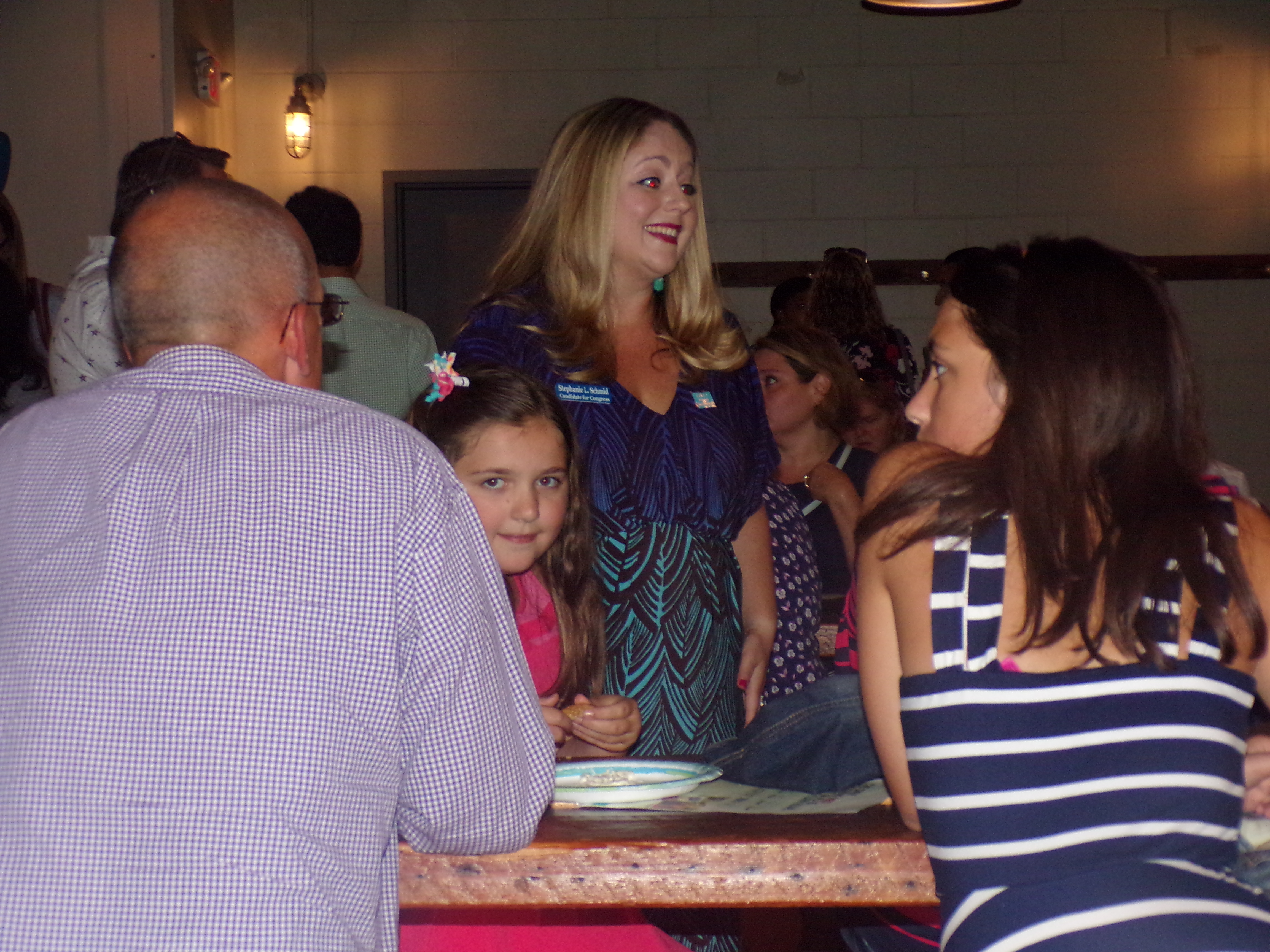 into bar brawls. But that's only if opposing sides show up and that wasn't the case here this evening at Beach Haus Brewery, where Democrats convened to boost the formal CD4 launch of former U.S. Foreign Service Official Stephanie Schmid of Little Silver.