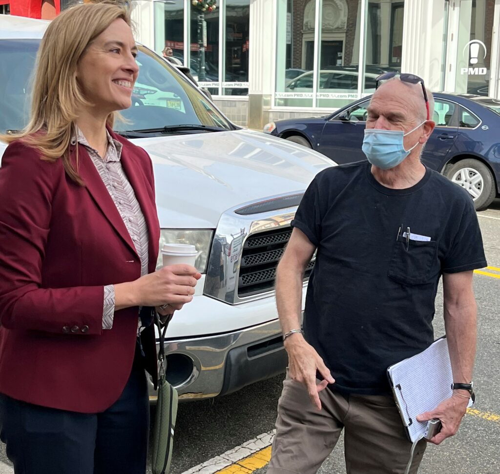 One man who stopped Sherrill on the street was local architect Larry Korinda. who talked about a number of projects he is working on and also about the need to relocate the town post office, which is on Main Street.