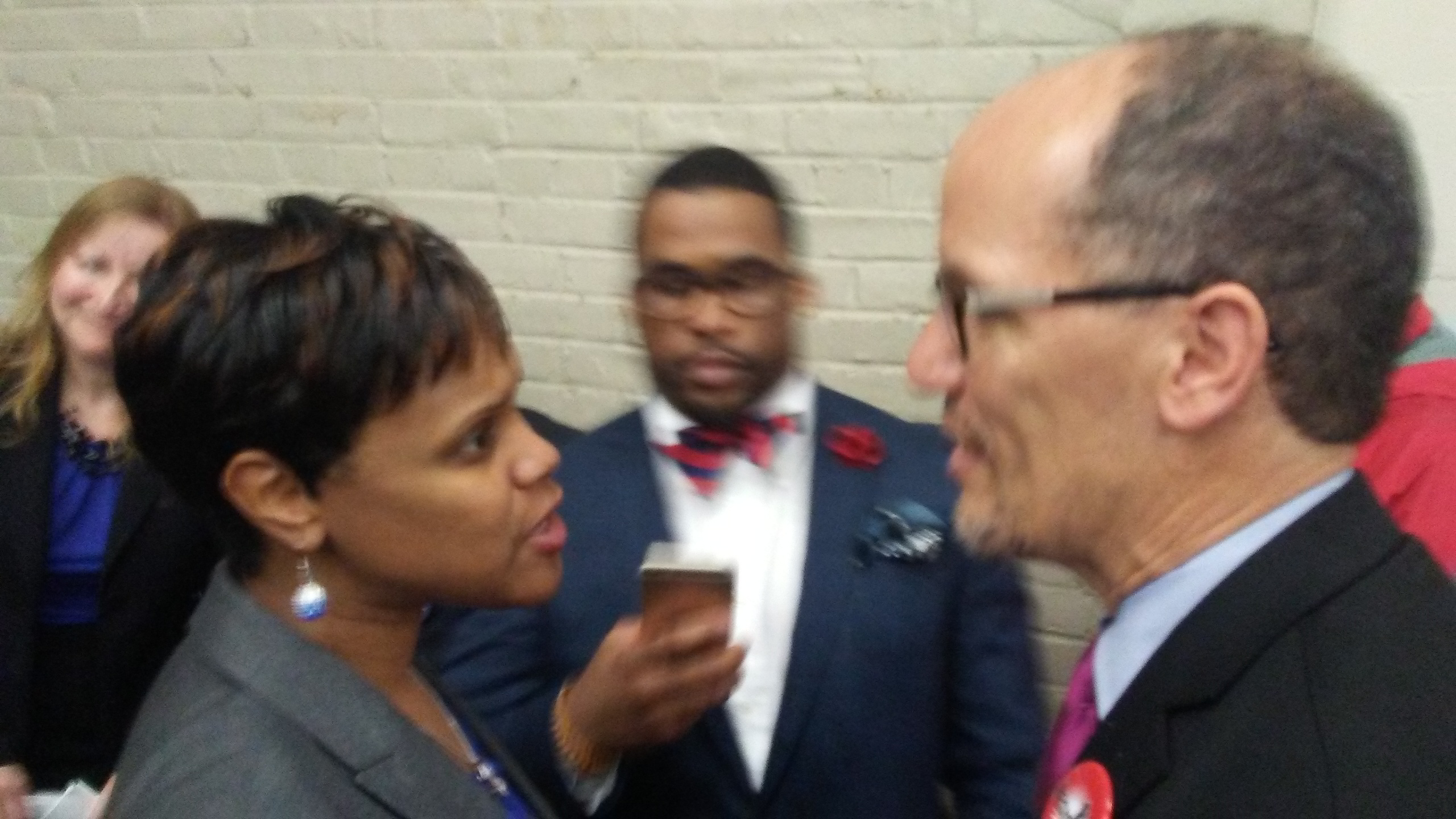 intention of putting their national-sized fingerprints on the battleground district, where incumbent state Senator Jen Beck (R-11) hopes to fend off Gopal, a former Monmouth County Democratic chairman. Having survived a brutal backroom fight to lead the party, with Perez, a former Labor Secretary, coming out on the winning end over the people-power branded Minnesota Congressman, the pair appeared here on a leg of their national unity tour.