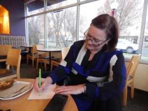 4. Peg Schaffer's keyed in. Down front, right in the front row, in fact, the chair of the Somerset County Democratic Committee hovered like a hawk on every word, facial tic and gesture of the seven people competing for the party nod. Somerset contains 17 CD7 towns. That's Schaffer country. Earlier in the day, Linda Weber and Malinowski had gone in and sat down in HQ as the chair and her entourage - including Vice Chair Zenon Christodoulou (who also later showed up at the debate) peppered them with questions. Schaffer is said to prefer a woman for the job but if so, she wouldn't say.
