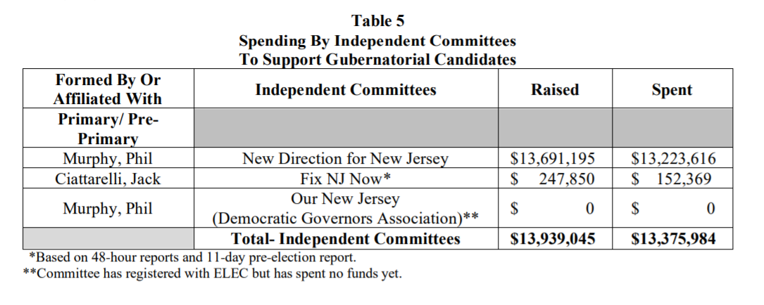Republican Assemblyman Jack Ciattarelli- were the two biggest spenders.