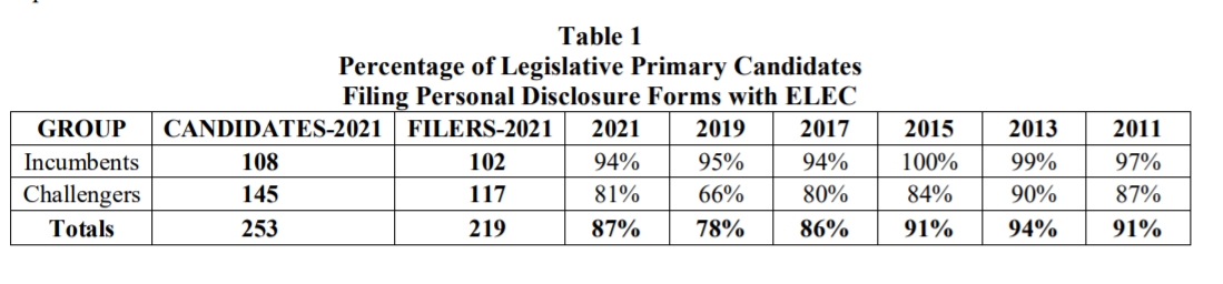 ELEC: Bigger Percentage of Legislative Candidates Filed Personal Financial Disclosure Forms in 2021 than in 2019