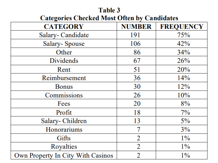 Candidates also must disclose gifts valued at more than $250, and whether they own any property in a city where casino gambling is authorized. Candidates can face fines up to $1,000 if they fail to file their PFD.