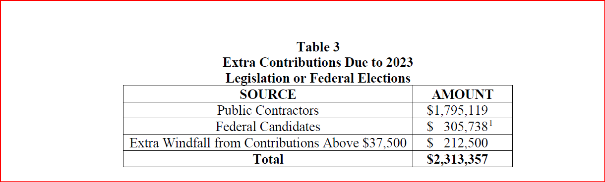 Along with benefits from the 2023 legislative changes, House candidates have contributed $243,918 through September 30, while U.S. Senate candidates have given $91,820.