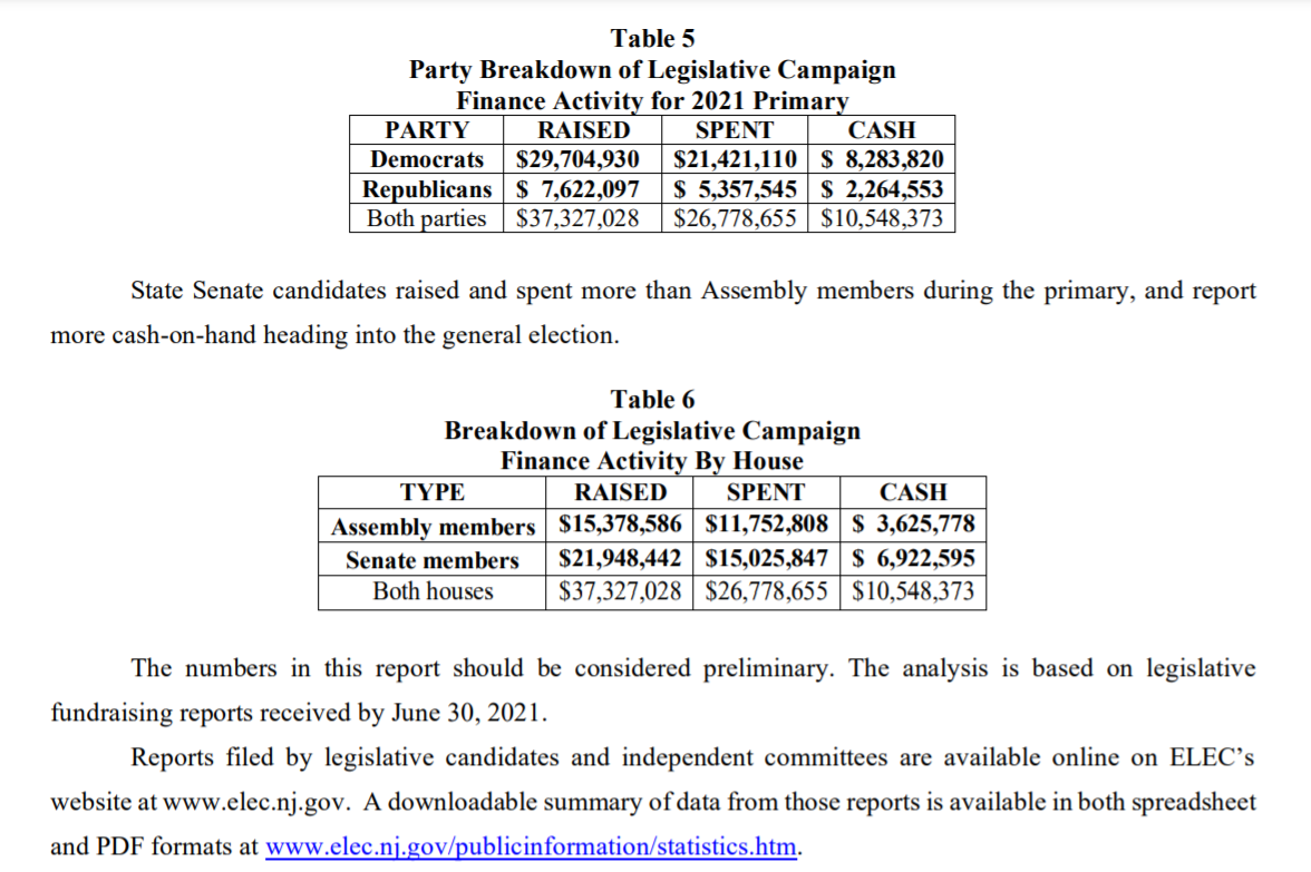 in their coffers that could be rolled over into the general election, according to post-election reports filed with the New Jersey Election Law Enforcement Commission (ELEC).