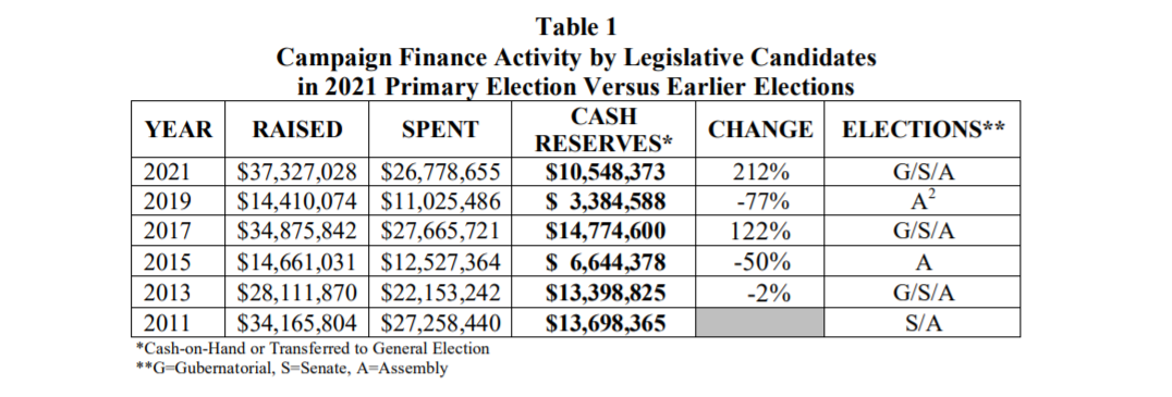 The $37.3 million raised by candidates for the 2021 primary was the most ever in dollars unadjusted for