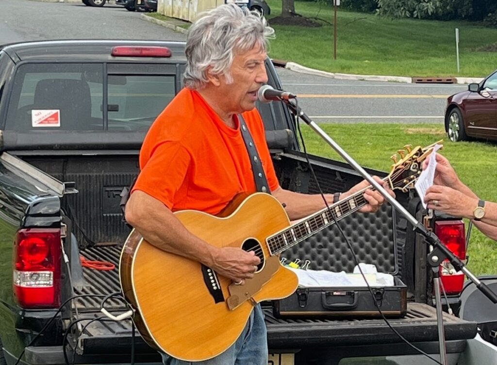 Guitarist Greg Stier performed a local version of Woody Guthrie's classic, "This Land is Your Land."