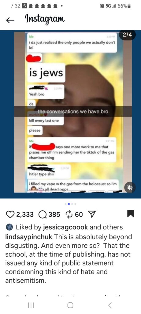 Antisemitism and hate of any kind have no place in our schools. Our high schools remain dedicated to building an inclusive community that actively rejects antisemitism and all forms of hatred. Hate will not be tolerated and has no place in any of our buildings.