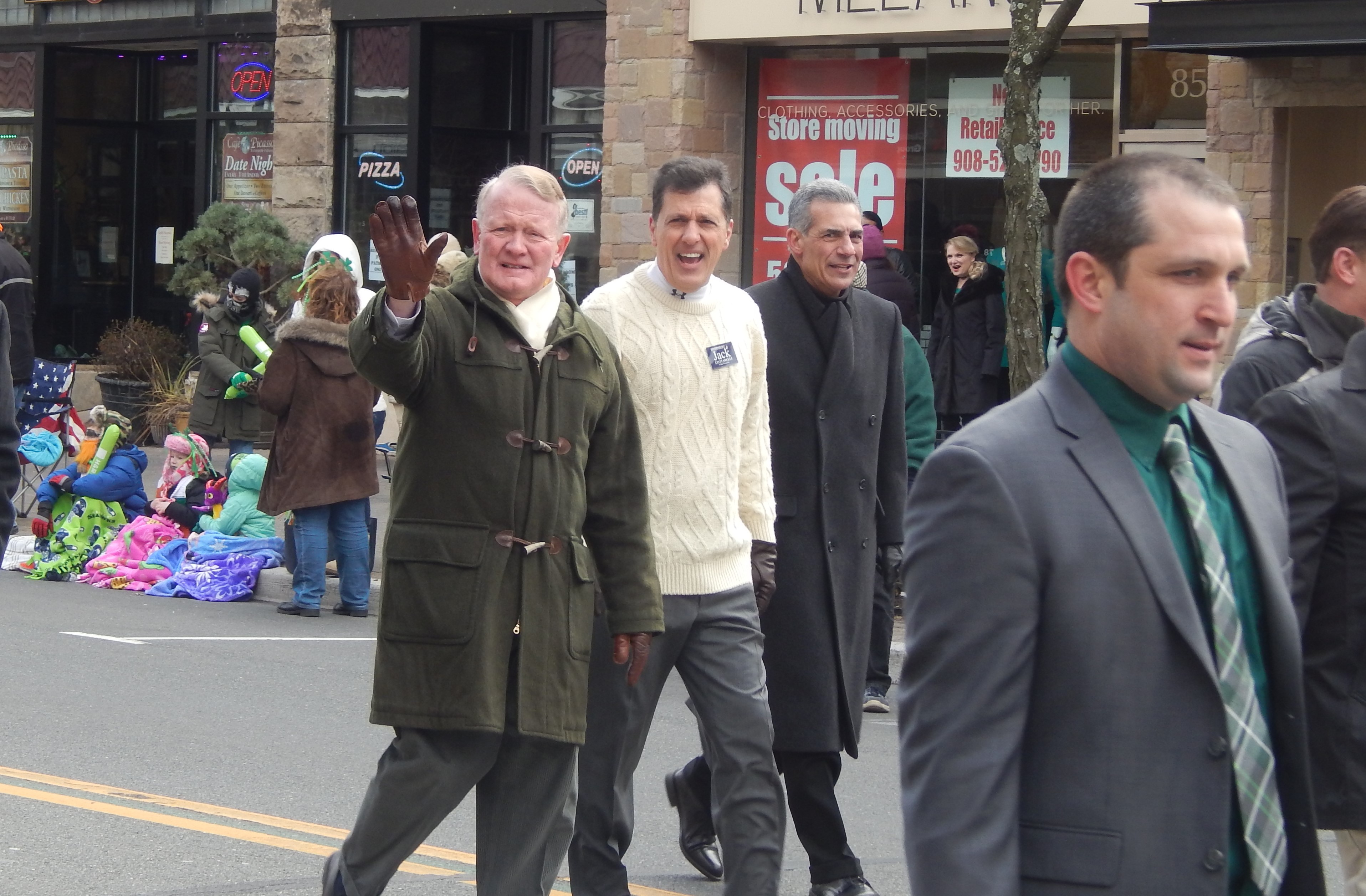 U.S. Rep. Leonard Lance (R-7), Somerset Clerk Brett Radi, Assemblyman Jack Ciattarelli (a candidate for governor), and Freeholder Mark Caliguire all walked with Gallagher at a very well attended parade where many of the onlookers ended up packed into Mannion's on the west side of town.