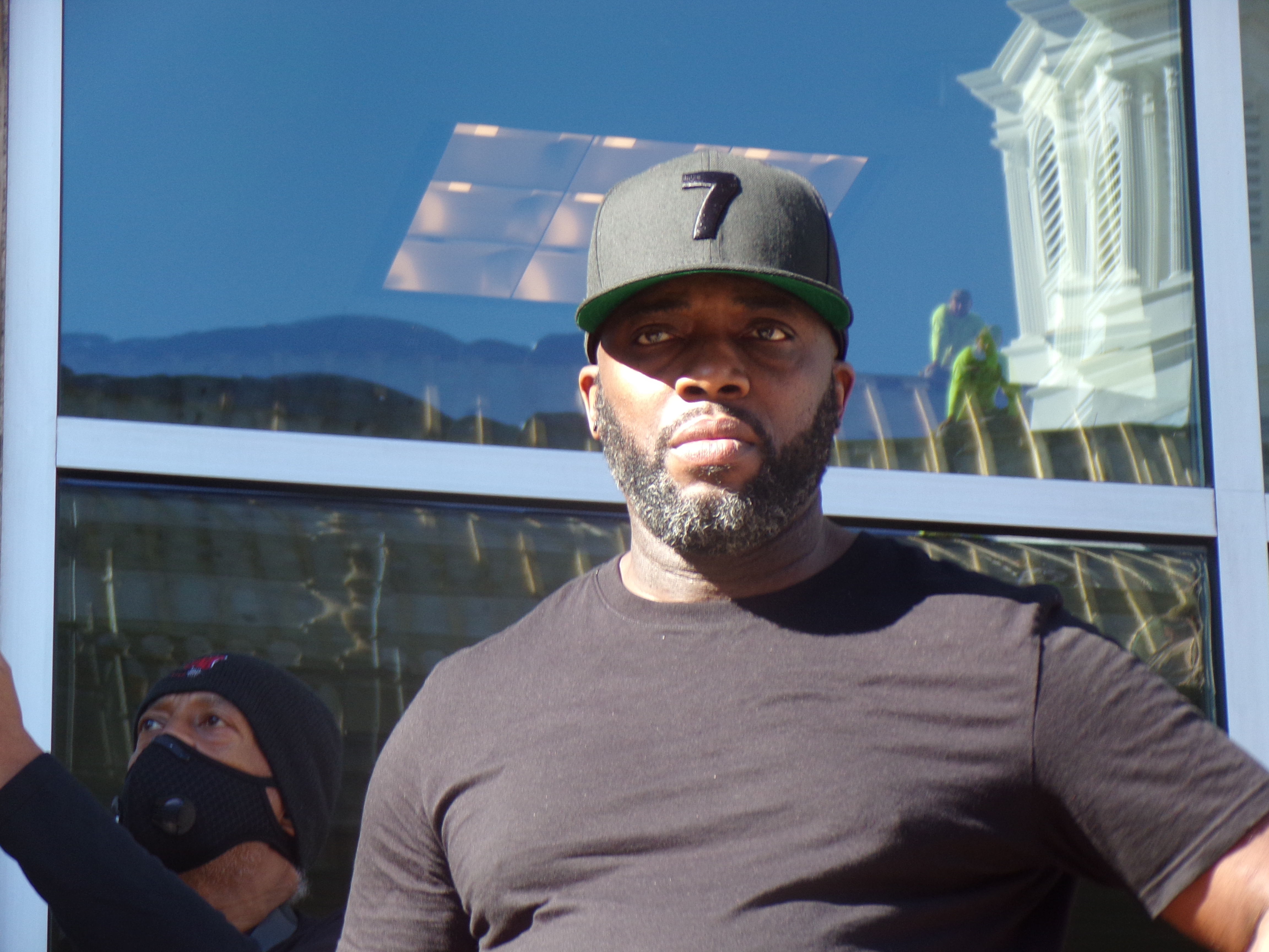Zayid Muhammad of Newark was among the speakers who stood in front of City Hall with Pittman, expressing his outrage and impatience at the establishment in his home state, not to mention politicians at the federal level. "This is the time to become fully engaged," said Muhammad, 45 days until Election Day. "We are at the doorstep of fascism. It's not a place where we want to go. Donald Trump must go. Racism and fascism must go. Mitch McConnell and Bill Barr and all those racist crackers must go.