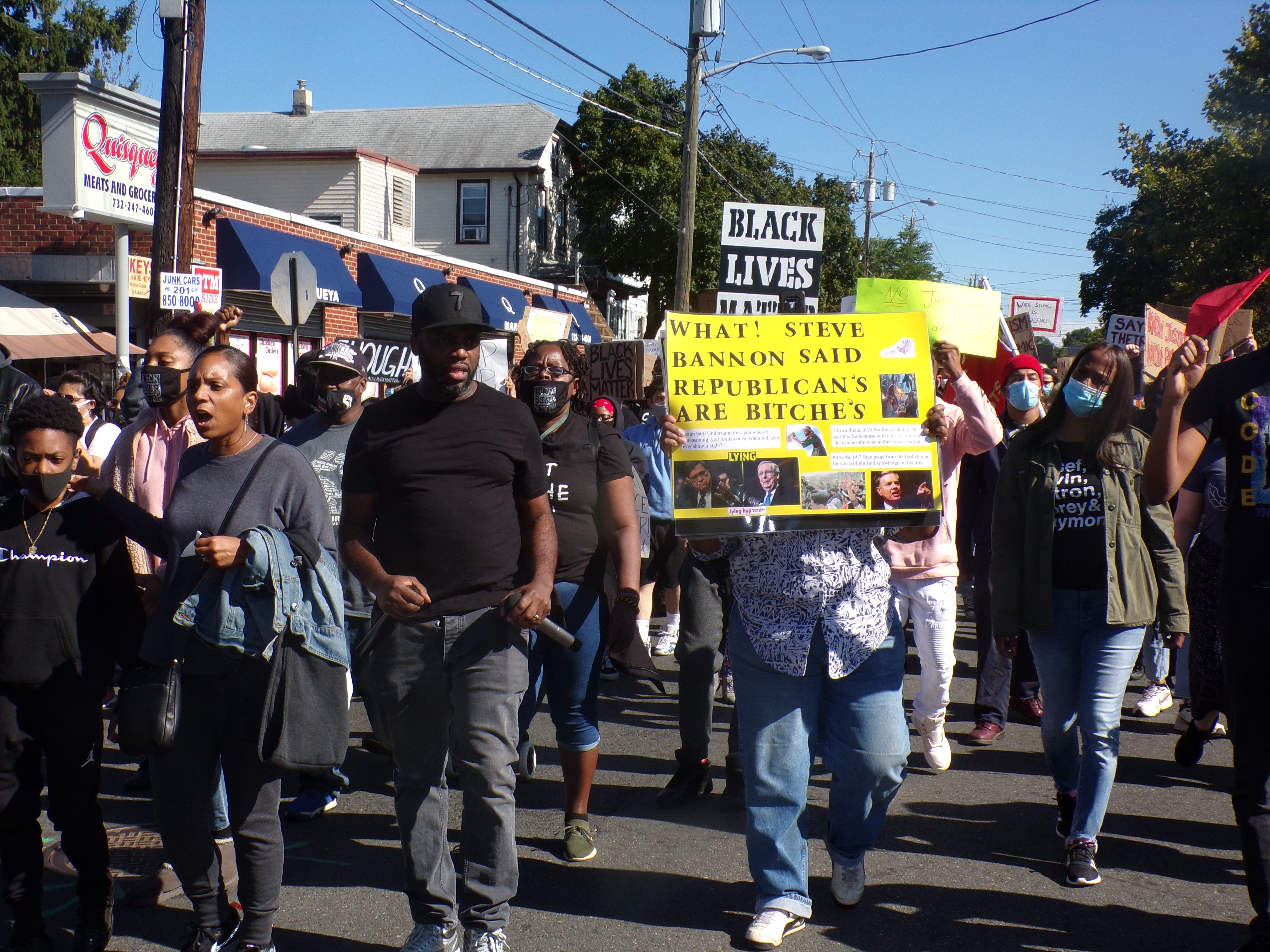Tormel Pittman, the New Brunswick-based Black Lives Matter leader, organized the event, and manned the bullhorn on the slow walk through the coke can-crushed streets of this Central Jersey university town. He's been at this for ten years, and at the forefront here since the police killing of George Floyd this past spring.