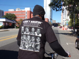 NEW BRUNSWICK - Wearing a black mask emblazoned with a fist and the words "I can't breathe" over his face, and a Yankees cap on his head, the brother of the late George Floyd came to New Jersey today to march with members of the Black Lives Matter movement and their allies, and to express opposition to the police brutality that extinguished his brother's life on May 25th.