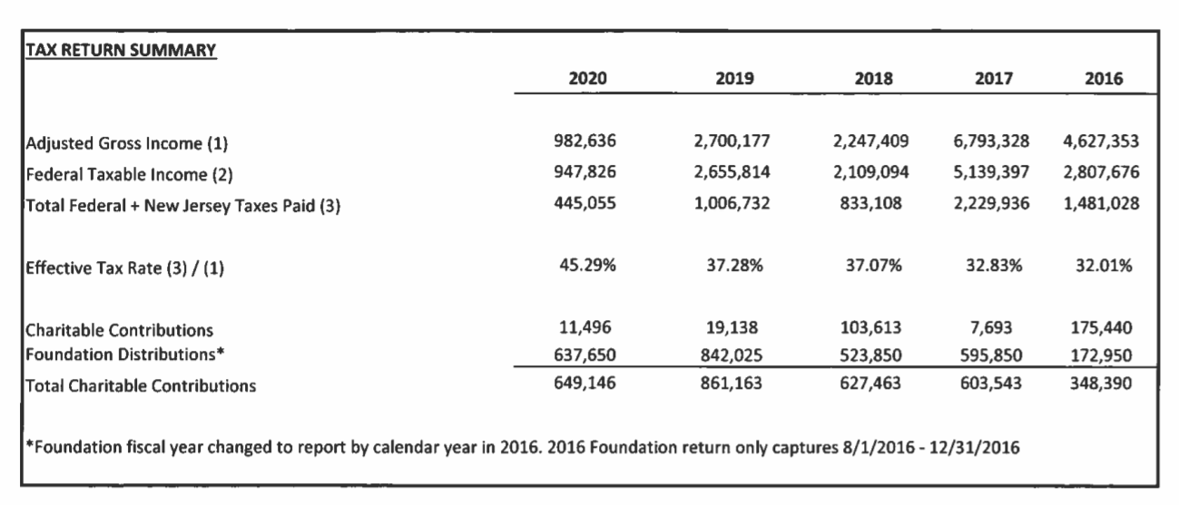 Governor Phil Murphy and First Lady Tammy Murphy are today releasing their 2020 tax returns. They are also releasing a five-year year-by-year comparison.