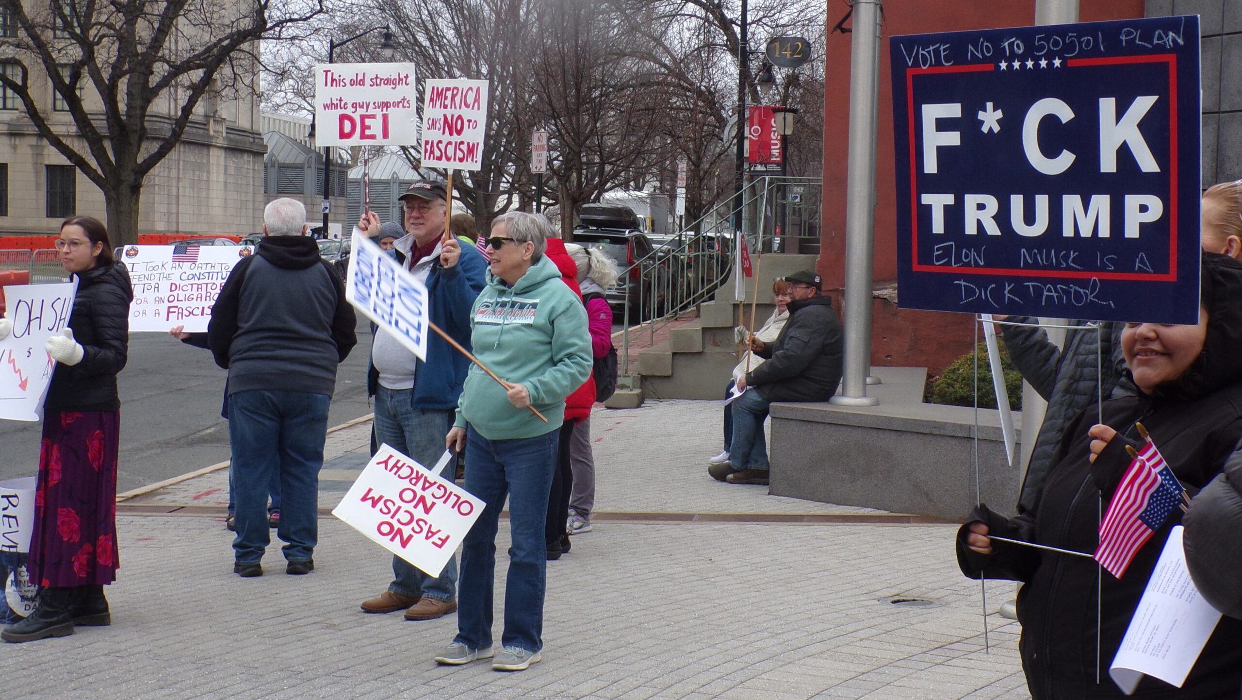 TRENTON - Mobilizing on West State Street in the State Capital, members of the New Jersey Chapter of 50501, a peaceful and progressive grassroots movement, today protested the Trump Administration's Ukraine policy.