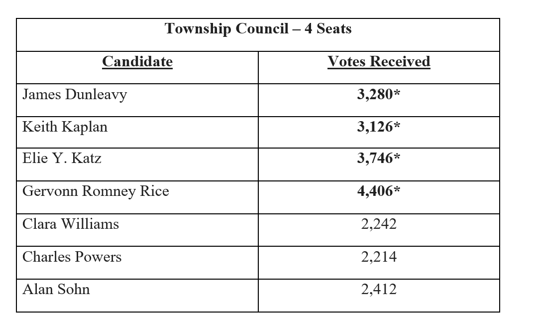 He backed Gervoon Rice, Jim Dunleavy, Keith Kaplan, and Elie Katz, or spots 1, 2, 3 and 4.