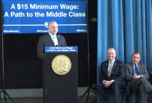 reach a $15 minimum wage. "Today, we start our way on this path," said Murphy. "Today we make our economy fairer and stronger.