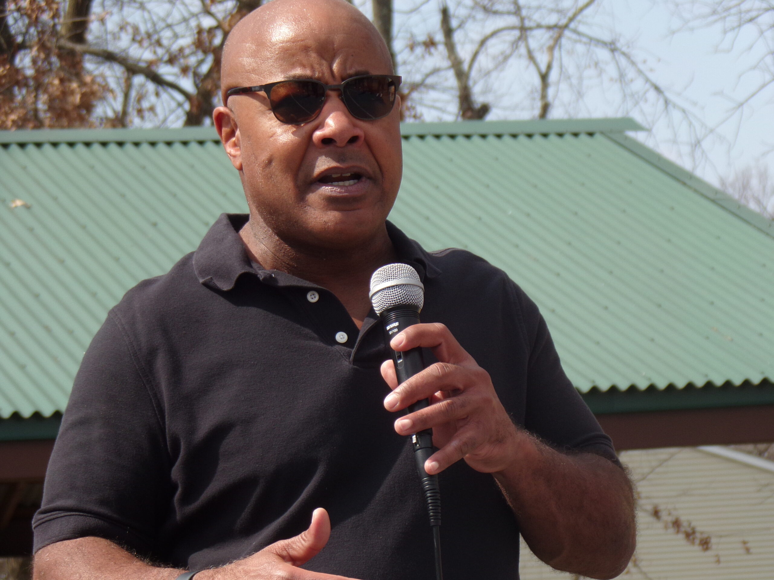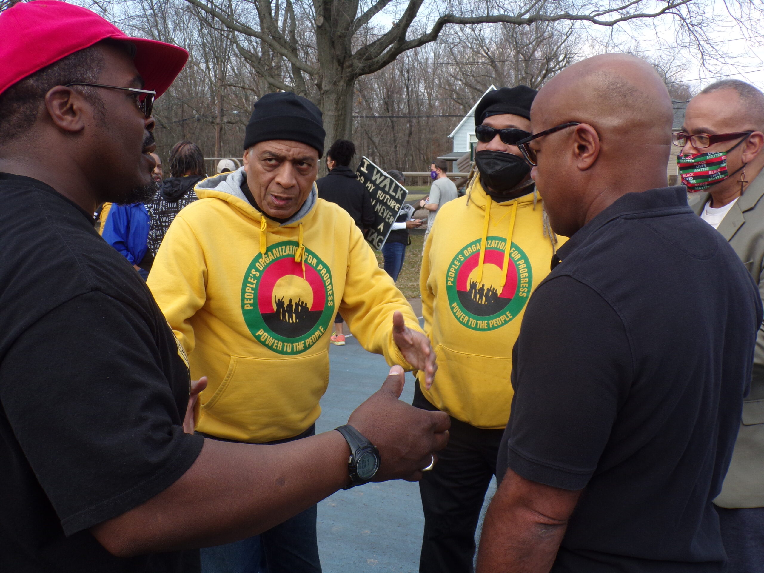 "I want to thank Pastor Hobbs for opening his arms to us," said Hamm, standing on the basketball court in Hobbstown Park. "When we first came here to Bridgewater, people said to us we need to reach out to the local groups and people in the community. The day we had the last march we came back from the march and we went to the church. It was unfortunate the same day the pastor buried his sister. If I had known, we would not have done it on that day. After the march was over, myself and other members of POP, we came to the Macedonia Baptist Church and the people welcomed us inside and Pastor Hobbs called me up to say a few words, and I stated my apology for the conflict. And I stated that we wanted to work together and from that moment on, Hobbs opened their arms and we've been working together. We want to continue to work together.