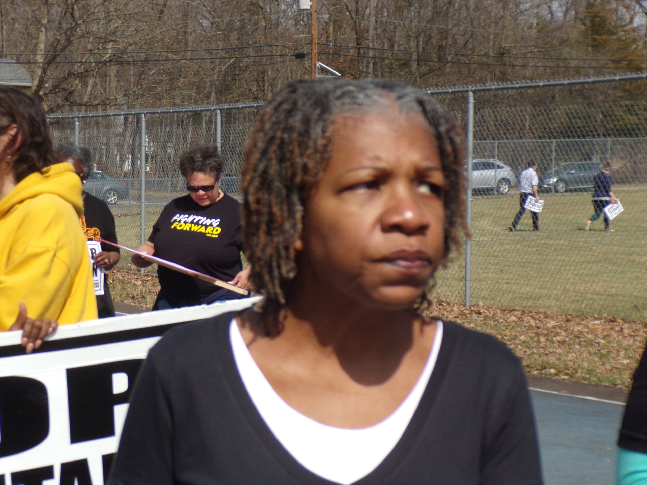 At the head of the long line of marchers walked Ernie Simms, aunt of young Z'Kye; and his grandmother, Lori York.
