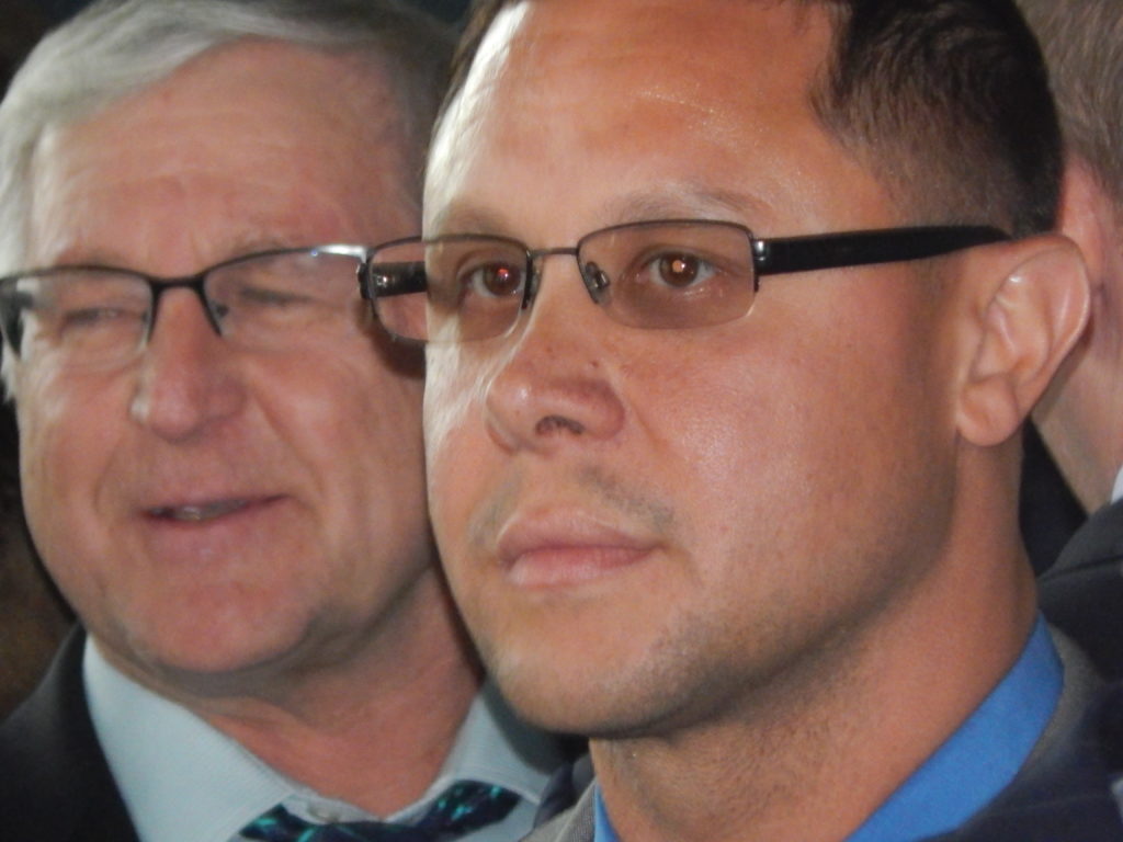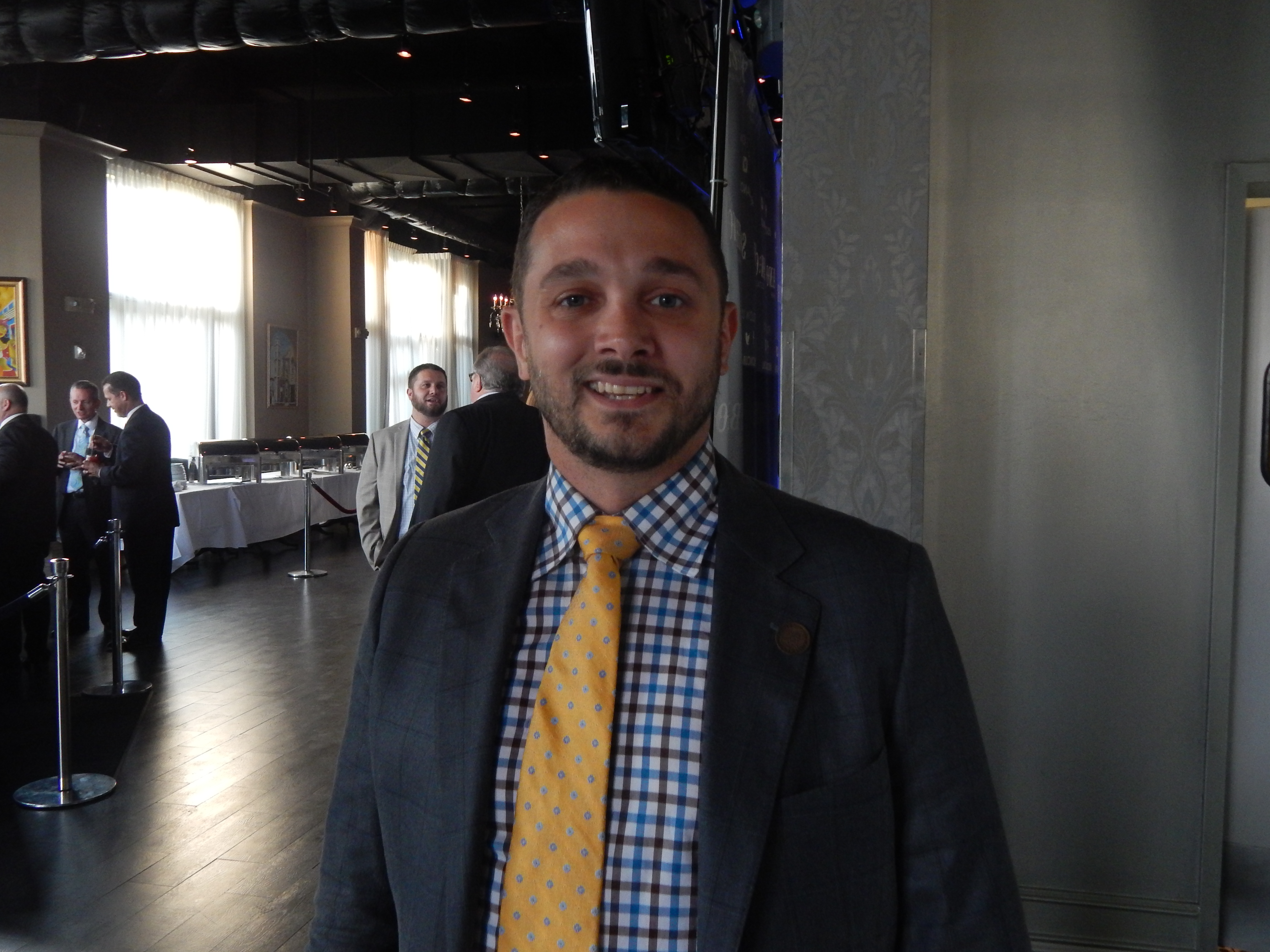 For his part, DeFusco dove into the crowd of bodies around the bar, a group that included Hudson County Executive Tom DeGise, former West New York Mayor Sal Vega, former Union City Mayor Rudy Garcia, Sacco operative Joey Muniz (pictured above), and DeGise COS Craig Guy. Democratic gubernatorial candidate Phil Murphy was due to arrive.
