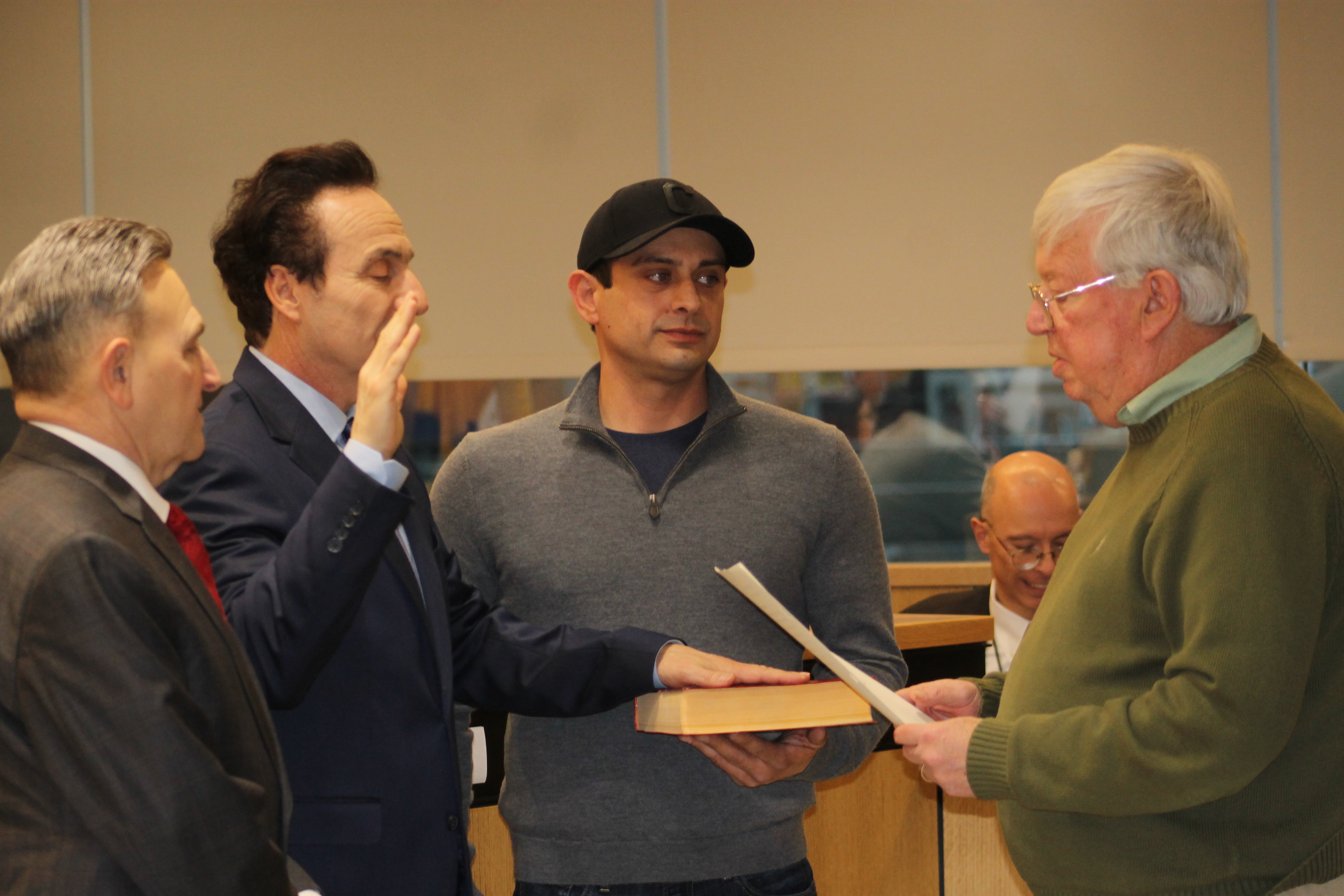 Romano, who will repeat at Pro Tempe or third in rank behind chairman Vainieri and vice chair, Bill O’Dea, insisted on having DeGise swear him in as well – even though County Clerk Junior Maldonado offered to conduct the ceremony.